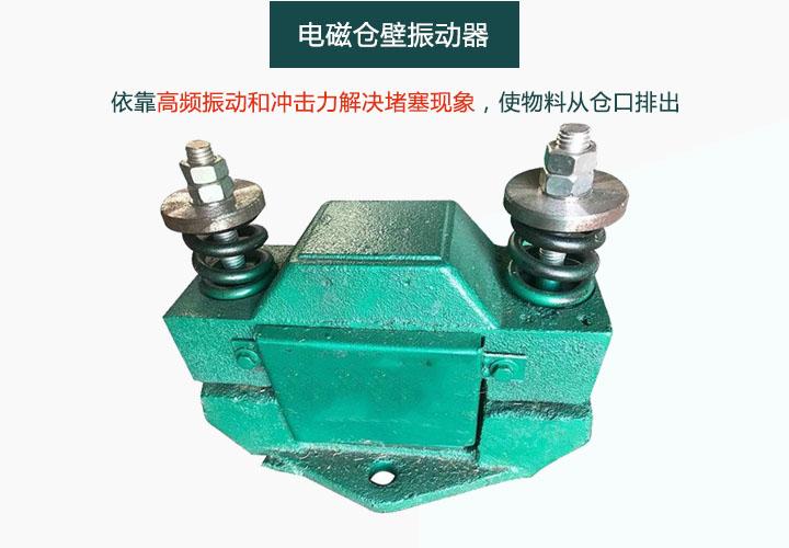 电磁仓壁振动器由振动体、共振弹簧、电磁铁、机座等部件组成。