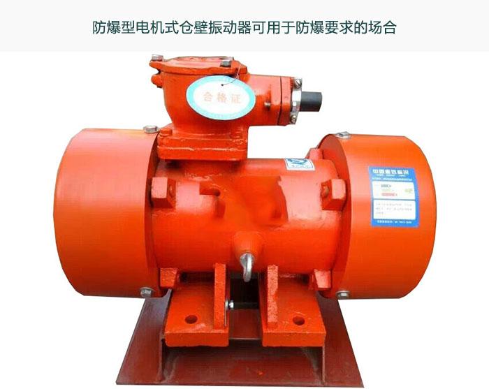 电机仓壁振动器工作时,振动电机的高速转动,便产生了对料仓壁的周期性高频振动,由于防闭塞装置的周期性振动,一方面使物料与仓壁脱离接触、消除物料与仓壁的摩擦,另一方面使物料受交变速度和加速度的影响,处于不稳定状态,从而有效地克服物料的内摩擦力和聚集力,以消除料仓内物料间的相对稳定性,使物料从料仓口顺利排出。