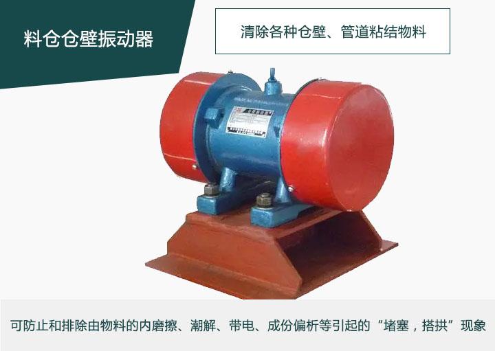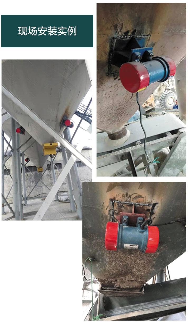 当料仓仓壁振动器装置工作时,防爆振动电机的高速转动,便产生了对料的周期性高频振打,由于防爆型仓壁振动器装置的周期性振动,一方面使物料与脱离接触、消除物料与的摩擦,另一方面使物料受交变速度和加速度的影响,处于不稳定状态,从而有效地克服物料的内摩擦力和聚集力,以消除料仓内物料间的相对稳定性,使物料从料仓口顺利排出。